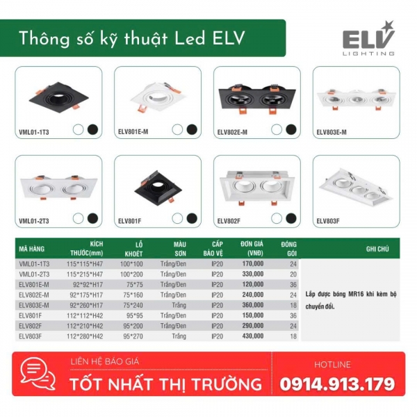 Đèn Led Module Chiếu Điểm Âm Trần ELV - ELV803F + ELV50
